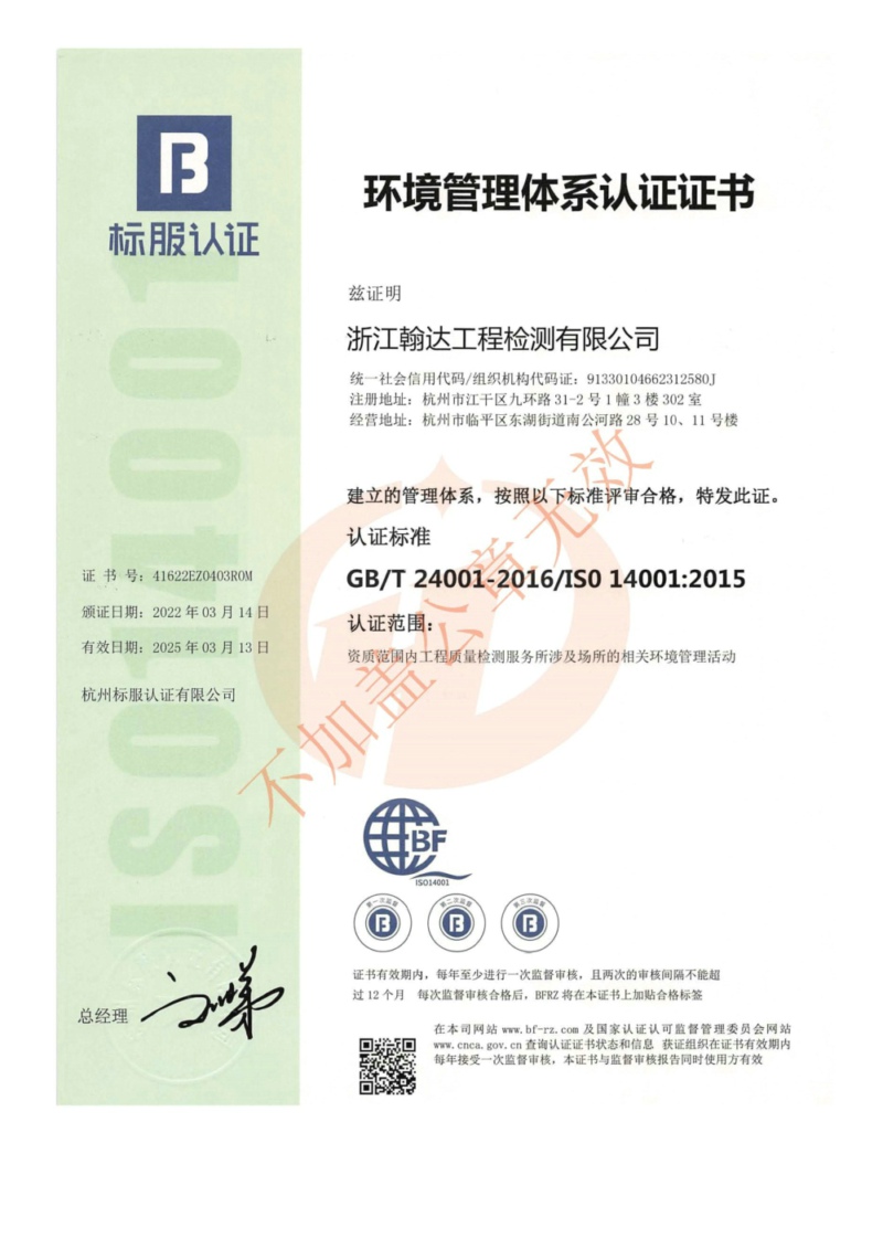 環(huán)境管理體系認(rèn)證證書